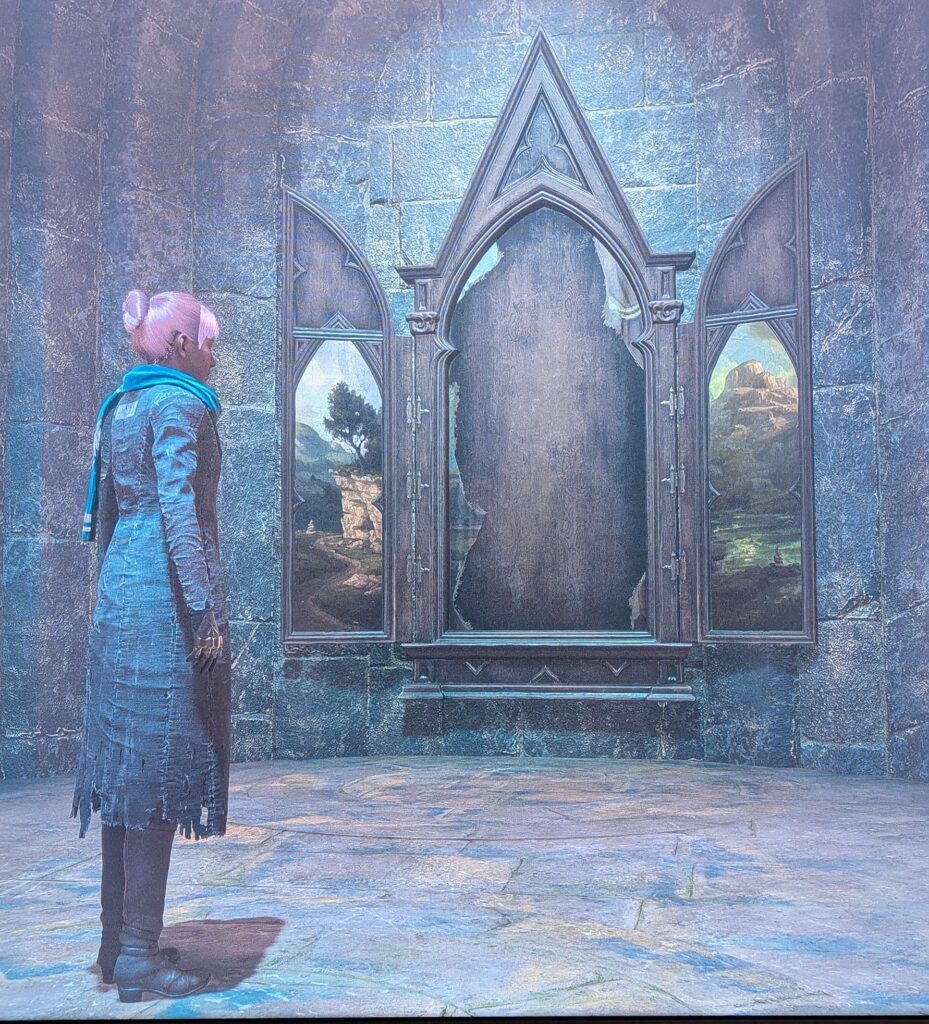 Another secret mirror wall to the Undercroft is here. We step through and place the canvas we found into the triptych. It’s a location that Sebastian recognizes. He’s ready to go right away, but I want to wait. I’d like to consult with Lodgok first. That I would trust a goblin infuriates Sebastian. He knows that a goblin cursed Anne, telling her that children should be seen and not heard. The tension between us is uncomfortable.